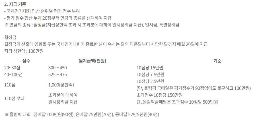 정확한 시점은 경기가 종료된 다음 달부터 바로 지급된다고 하네요.