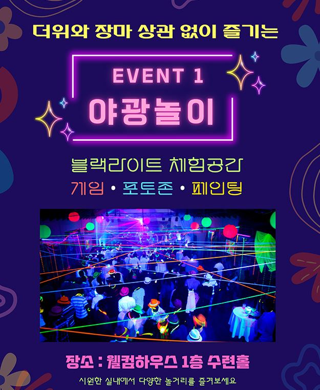 주말과 공휴일에 열리는 이번 축제에는 야광놀이, 물총싸움, 포토존, 바디페인팅 등 신나는 액티비티가 가능한데요.