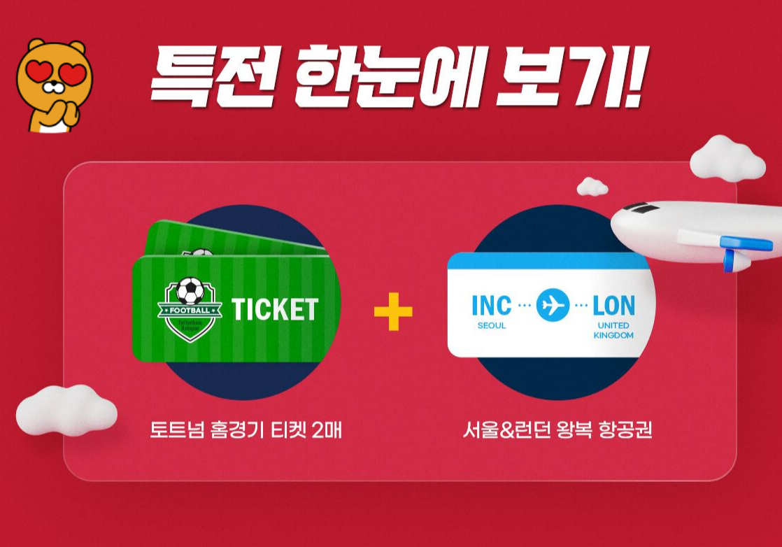 비행기 티켓 2매와 토트넘 홈구장 티켓까지 런던에서 손흥민을 만나보세요!!
