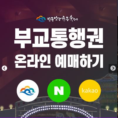 진주남강 유등축제 홈페이지, 네이버 예약하기, 카카오톡으로 예약하기 중 편한 방법으로 입장권 구입 가능합니다.