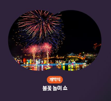 - 개막식과 함께 화려한 불꽃놀이가 시작됩니다.